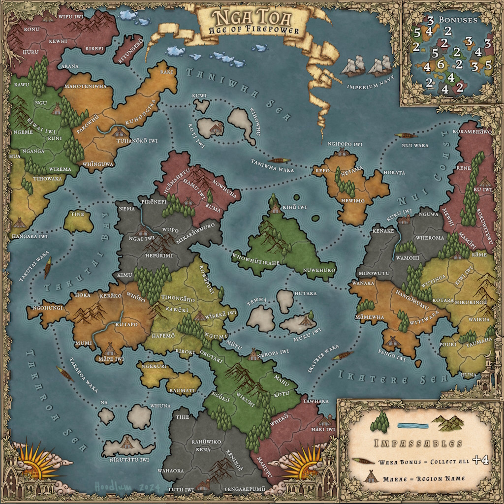 Featured on D12. Fantasy map of an alternate world based on the NZ Musket Wars